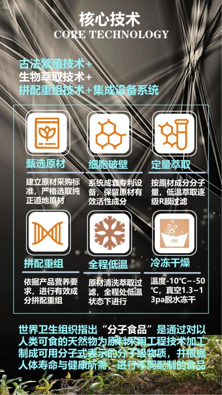 采集3-5年生霍山米斛鮮莖,運(yùn)用現(xiàn)代生物技術(shù),全程-50℃內(nèi)低溫真空冷凍干燥,精制而成霍山米斛凍干粉。
