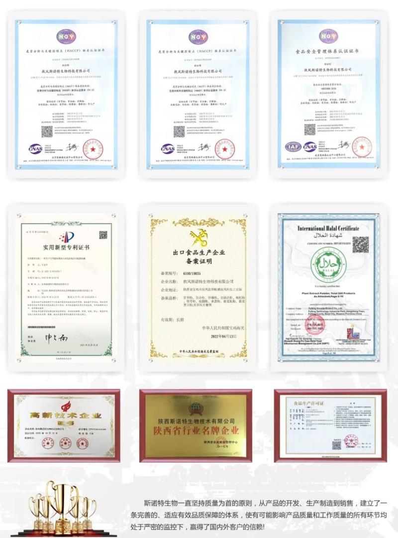 公司已通過SC、ISO22000、ISO9001、HACCP、KOSHER、HALAL,出口食品生產企業備案等認證,并先后榮獲“中國高新技術企業”、“陜西省行業名牌企業”、“中國產品質量放心企業”等多項榮譽。