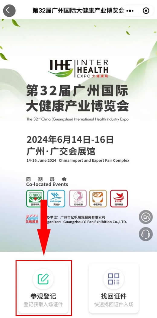 STEP1:掃碼關注展會公眾號“IHE廣州大健康展”。