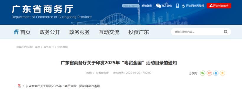 一、“粵貿(mào)全國(guó)”工作已列入2025年全省商務(wù)重點(diǎn)工作,請(qǐng)各市各單位高度重視,安排市財(cái)政配套資金保障“粵貿(mào)全國(guó)” 各項(xiàng)工作的順利開(kāi)展。