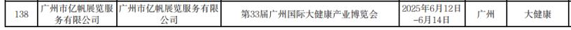 其中,廣州國(guó)際大健康產(chǎn)業(yè)博覽會(huì)(簡(jiǎn)稱IHE China)入選2025年“粵貿(mào)全國(guó)”活動(dòng)目錄。廣州國(guó)際大健康展始創(chuàng)于2002年,迄今已連續(xù)舉辦至第33屆。第33屆廣州國(guó)際大健康展將于2025年6月12-14日在廣州·廣交會(huì)展館舉辦!
