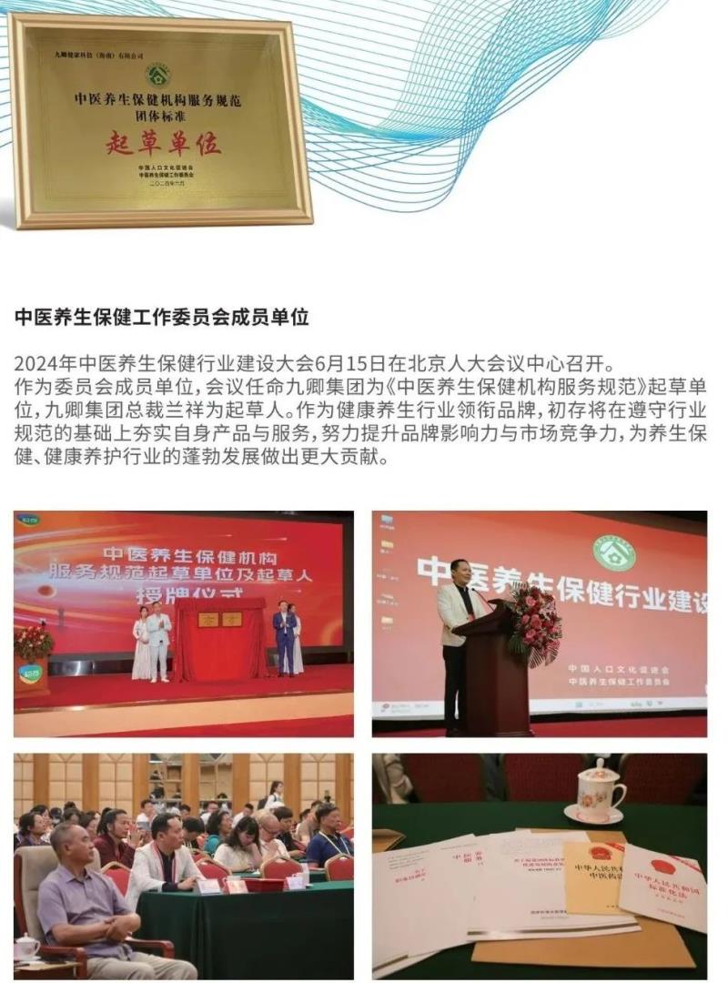 2024 年九卿集團以 “泰迎健康” 為大健康業務經營主體,達成 “健康,讓每個人自己掌控;創業,讓每個人都有路徑” 的品牌使命,致力成為中國知名的健康養護品牌。