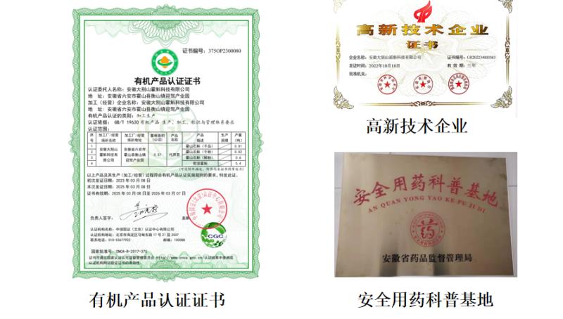 擁有太平畈林下和原生態數字化農業智慧種植示范基地1000余畝。建有安徽省霍山石斛文化科普基地大別山霍斛文化館、霍斛百草園、霍山石斛組培煉苗中心和即溶霍斛專業化、數智化生產車間以及遍布全國主要市場的霍斛體驗館。公司堅持做原種地、原產地、原生態種植地“三地”產品—道地霍山石斛,實現霍山石斛全業態、全產業鏈聯動發展。
