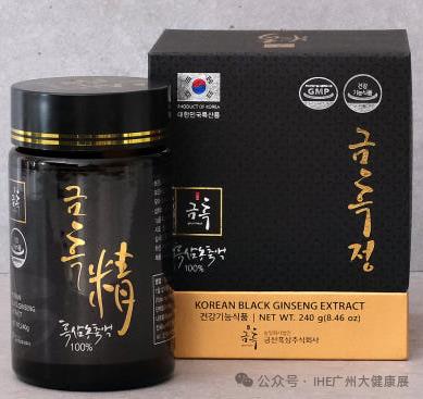錦黑精由韓國特產高麗人參制成,原料為超過4年的新鮮人參, 把人參篩選、清洗和蒸制、暴曬,九蒸九曬制作成黑參,再經過低溫提取,保留黑參的獨特風味。 這是一種特殊的提取物制備方法,該方法在原有的人參皂苷Rg1、Rb1、Rg3的基礎上,增加了 Rg3、Rg5、Rk1的含量。