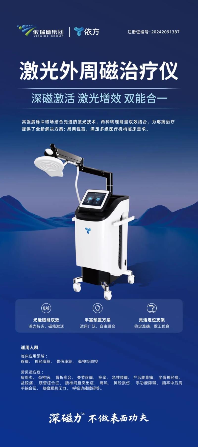 激光脈沖磁治療儀,作為依方醫療的明星產品,以其卓越的快速消炎、消腫、止痛及修復功能,在康復科、疼痛科、中醫科等多個醫療領域展現出非凡的成就。該產品已成功入駐包括廣州醫科大學第二附屬醫院在內的全國100多家三甲醫院,贏得了廣大醫患的高度認可。