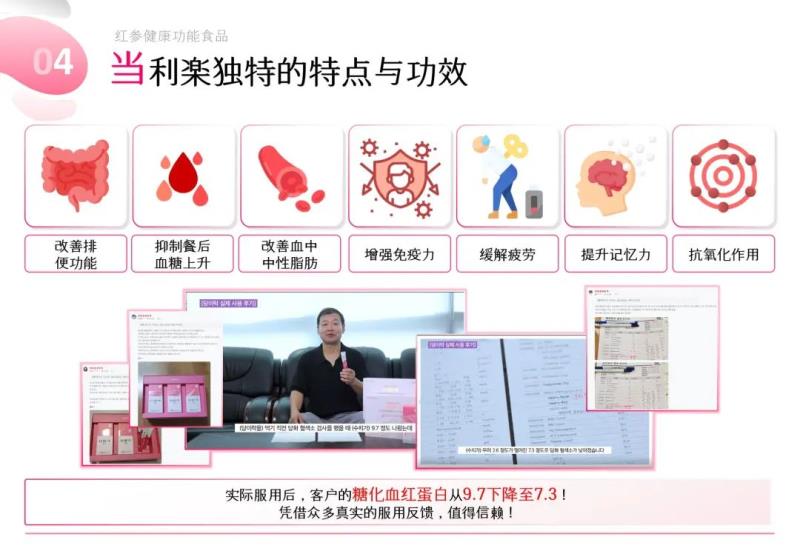 當利楽由世界知名的人參?紅參專家高成權博士傾力研發。他專注人參科研30余年,曾發表數十篇國際學術論文并獲得新藥開發功勞獎等榮譽。高博士將傳統藥理與現代科學相結合,其獨特配方和工藝為當利楽的高效性與安全性提供了有力背書,令消費者更加信賴。